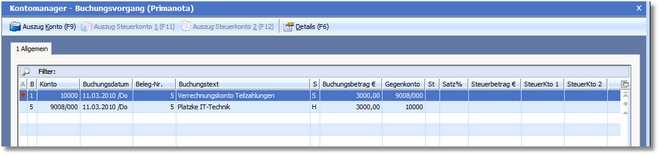 Das Programm öffnet den Dialog "Kontomanager - Buchungsvorgang (Primanota)".