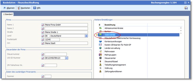 << Hier KLicken um eine Inhaltsübersicht anzuzeigen >> Navigation: Finanzbuchhaltung > Stammdaten > Basisdaten > Datevcenter |