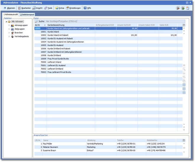 Die Karteikarte "Adressauswahl"