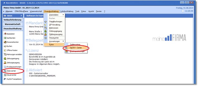 Wenn Sie den vollen Funktionsumfang (Export und Import) des DATEV-Centers nutzen möchten, wird eine Lizenzerweiterung benötigt.