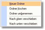 3. Zeigen Sie auf den Menüeintrag "Neuer Ordner". Mit einem Mausklick legt das Programm die neue Textseite in einer der ausgewählten Textseite untergeordneten Gliederungsebene an.