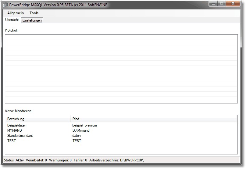 - Übersicht der aktiven Mandanten