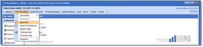 1. Klicken Sie mit der Maus im Hauptmenü auf "CRM/OfficePlaner > Mailsystem".