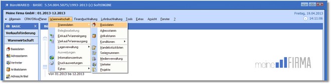 1. Klicken Sie mit der Maus im Hauptmenü auf "Warenwirtschaft > Stammdaten > Basisdaten".