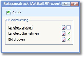 Aktivieren Sie den Status dieses Feldes, wenn das in den Stammdaten hinterlegte Artikelbild im Beleg gedruckt werden soll.