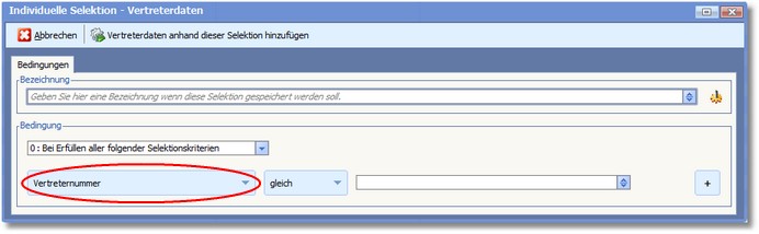 Der Dialog "Individuelle Selektion - Vertreterdaten" wird geöffnet.