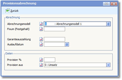Diese Karteikarte nimmt die Daten zur Provisionierung bzw. Vertreterabrechnung auf: