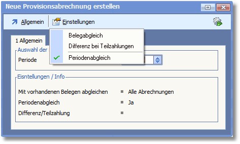 3. Drücken Sie die Funktionstaste [F3] bzw. wählen Sie den Menüeintrag "Allgemein > Neue Provisionsabrechnung".