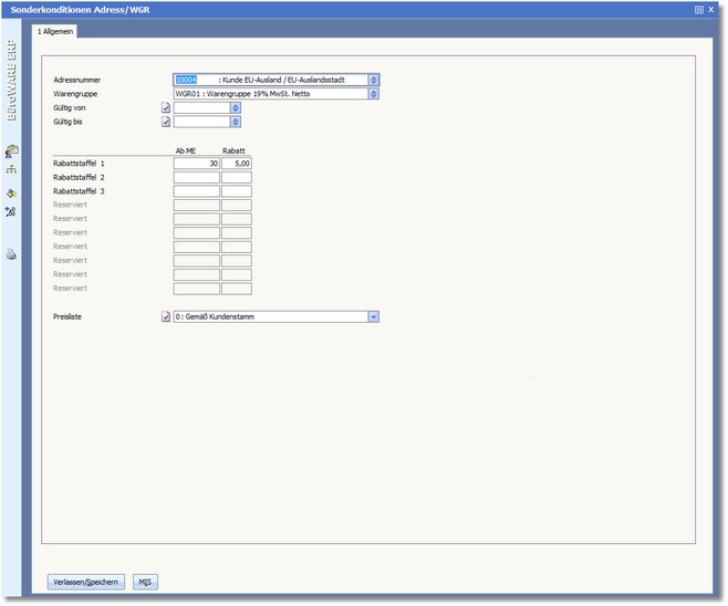 Navigation:  Warenwirtschaft > Stammdaten > Konditionen > Adress/Warengruppen >