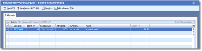 5. Um einen im Belegboard angezeigten Beleg wieder zu bearbeiten, wählen Sie den zutreffenden Beleg aus und drücken [RETURN] oder klicken auf den Symbolbutton <Bearbeiten>. Das Programm öffnet die Positionserfassung des ausgewählten Beleges.