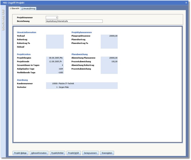 << Hier KLicken um eine Inhaltsübersicht anzuzeigen >> Navigation: Warenwirtschaft > Auswertungen > Informationszentrum > MIS-Infozentrum > Projekte > Projekte analysieren |