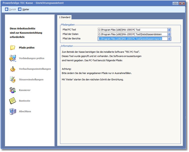 Die hier aufgeführten Pfade werden aus dem MA-1595 PC Tool übernommen und müssen in der Regel nur bestätigt werden: