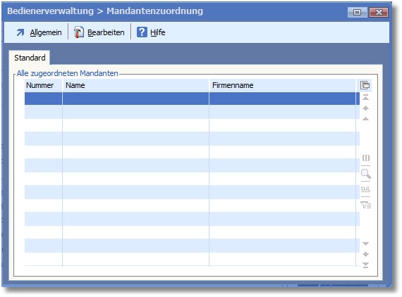 Über den Menüpunkt "Bearbeiten > Mandanten zuordnen" der Bedienerverwaltung im Designer können Sie den Bediener einem oder mehreren Mandanten zuordnen.
