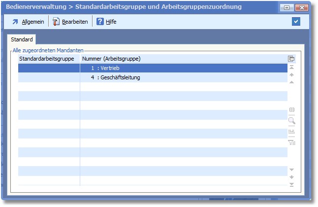<< Hier KLicken um eine Inhaltsübersicht anzuzeigen >> Navigation: Kassensystem > Technische Informationen (Systeminformation) > Bedienerverwaltung > Bediener erfassen/ändern > Die Karteikarte "Standard" > Standardarbeitsgruppe und Arbeitsgruppenzuordnung |