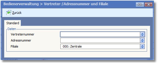 << Hier KLicken um eine Inhaltsübersicht anzuzeigen >> Navigation: Kassensystem > Technische Informationen (Systeminformation) > Bedienerverwaltung > Bediener erfassen/ändern > Die Karteikarte "Standard" > Verweise auf Vertreter-/Adressnummer und Filiale |