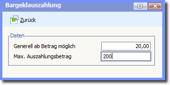 Mit diesen Optionen regeln Sie die Höhe des möglichen Auszahlungsbetrages und legen fest, ab welchem Umsatzbetrag die Auszahlmöglichkeit angeboten wird.