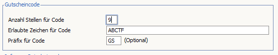 Der Gutscheincode besteht also aus Präfix + 9 Stellen.