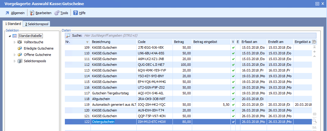 In der Gutscheindatenbank werden der Gutscheinname und der Empfänger mit gespeichert.