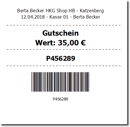 Angenommen, Sie verkaufen einen vorgedruckten Gutschein mit der Nummer "P456289".