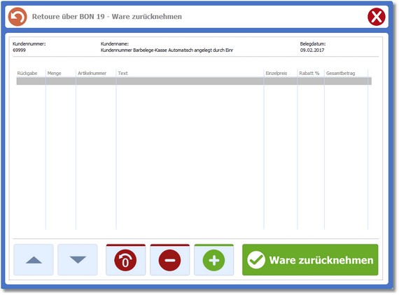 So können Sie eine Retoure über einen Bon durchführen: