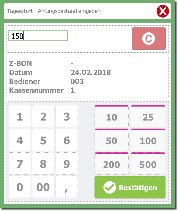 ...legen Sie den Wechselgeldbestand fest.