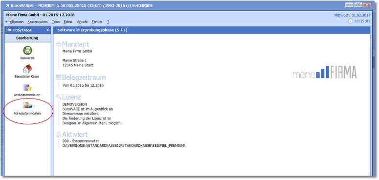 << Hier KLicken um eine Inhaltsübersicht anzuzeigen >> Navigation: Kassensystem > Technische Informationen (Systeminformation) > Adressstammdaten |