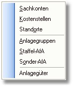 Über diesen Menüpunkt wird der Staffel-AfA-Stamm aktiviert.