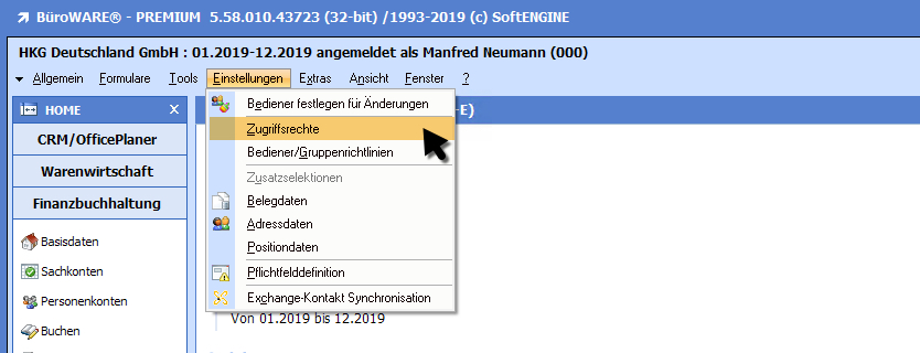 Da diese Einstellung pro Jahr vorgenommen werden kann, ist die Festlegung in den sogenannten Zugriffsrechten vorzunehmen.