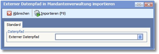 Externer Mandantenpfad in Mandantenverwaltung importieren Öffnet ein Dialogfenster zur Eingabe eines externen Mandantenpfads: