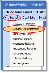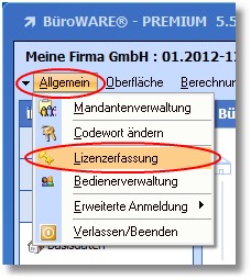 2.Wählen Sie anschließend im Designer den Menüpunkt "Allgemein > Lizenzerfassung" und halten Sie den Lizenzschlüssel bereit.