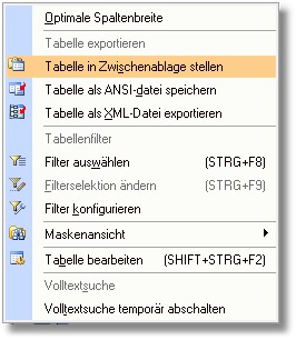 2. Wählen Sie den Menüpunkt "Tabelle in Zwischenablage stellen".