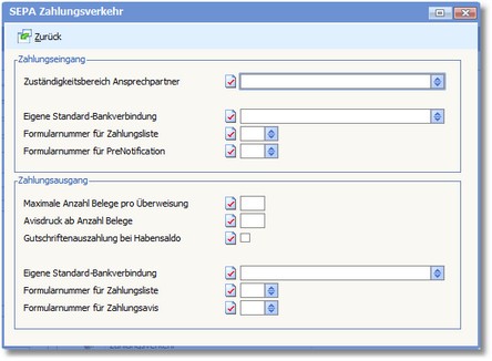 << Hier KLicken um eine Inhaltsübersicht anzuzeigen >> Navigation: Finanzbuchhaltung > Stammdaten > Basisdaten > Basisdaten - Menü "Bearbeiten" > SEPA Zahlungsverkehr |