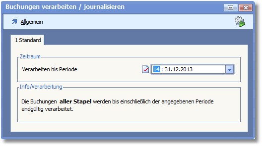 3. Geben Sie im nachfolgenden Fenster die Periode ein, bis zu welcher Sie die Buchungen des Stapels verarbeiten möchten.