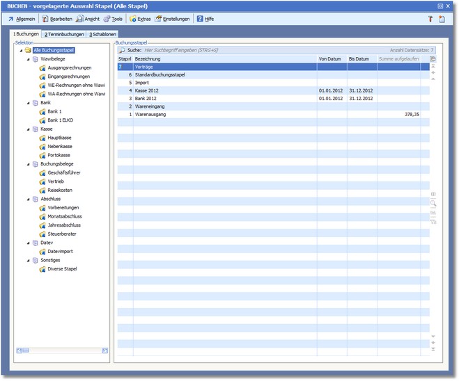 In der Stapelverwaltung können Sie Belegfächer, Belegordner und Buchungsstapel anlegen.