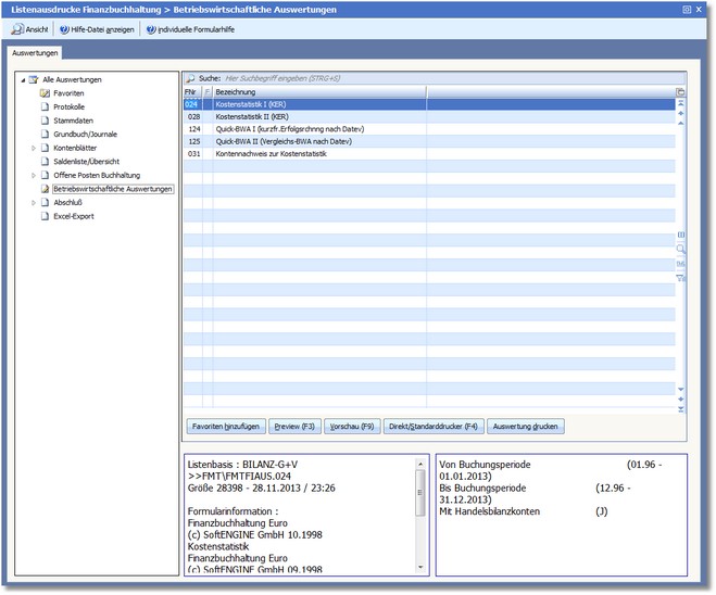 << Hier KLicken um eine Inhaltsübersicht anzuzeigen >> Navigation: Finanzbuchhaltung > Monatliche/periodische Arbeiten > Auswertungen > Druckauswertungen > Betriebswirtschaftliche Auswertungen |