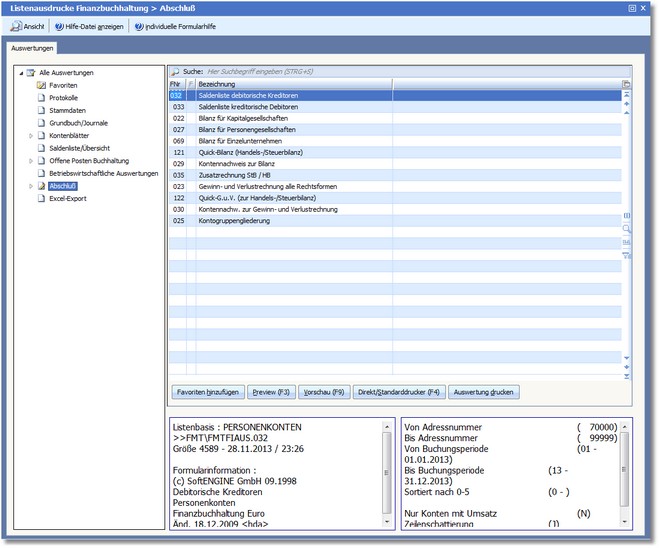 Hier finden Sie alle Auswertungen, die für den Jahresabschluss relevant sind.