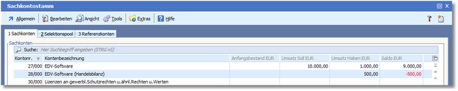 Das Sachkonto des Anlagegutes ist 27 (EDV-Software).