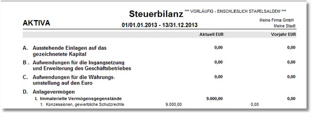 Drucken Sie nun die Steuerbilanz: