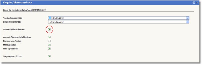 Drucken Sie nun die Handelsbilanz, indem Sie die Option "Mit Handelsbilanzkonten" aktivieren.