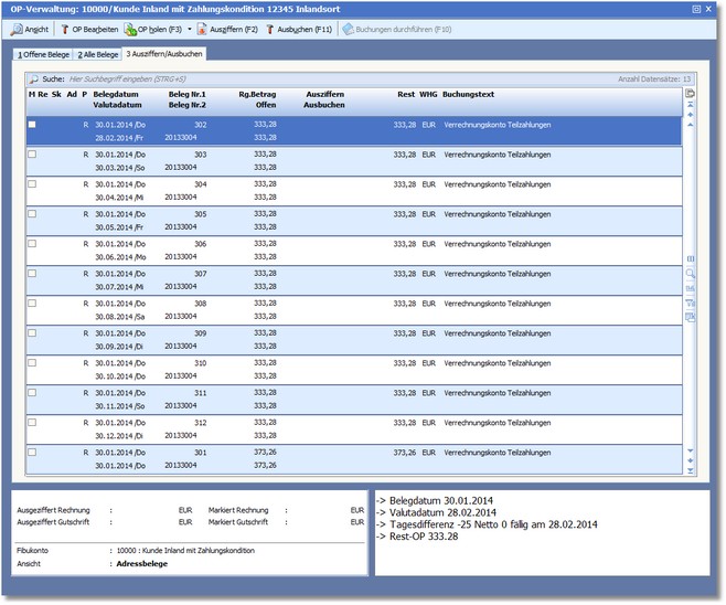 Verfahren Sie nun wie im Kapitel "Offene Posten ausziffern" beschrieben.