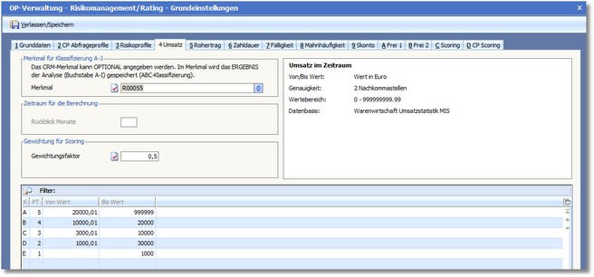 << Hier KLicken um eine Inhaltsübersicht anzuzeigen >> Navigation: Finanzbuchhaltung > Laufende Vorgänge > OP-Verwaltung > Debitorenkennzahlen/Rating > Debitorenrating einrichten |