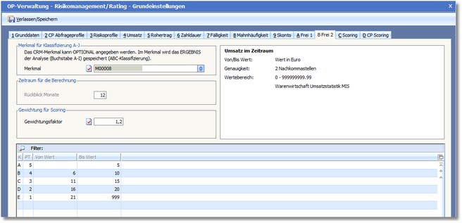 << Hier KLicken um eine Inhaltsübersicht anzuzeigen >> Navigation: Finanzbuchhaltung > Laufende Vorgänge > OP-Verwaltung > Debitorenkennzahlen/Rating > Debitorenrating einrichten > Die Karteikarten "Frei 1" und "Frei 2" |