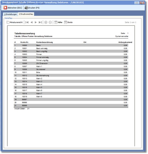 << Hier KLicken um eine Inhaltsübersicht anzuzeigen >> Navigation: Finanzbuchhaltung > Laufende Vorgänge > OP-Verwaltung > Karteikarte "Alle Konten" > Druckassistent > Druckvorschau |