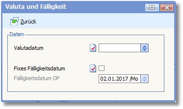 Valuta und Fälligkeit Mit [STRG]+[2] können Sie Angaben zu Valuta und Fälligkeit des OPs bearbeiten: