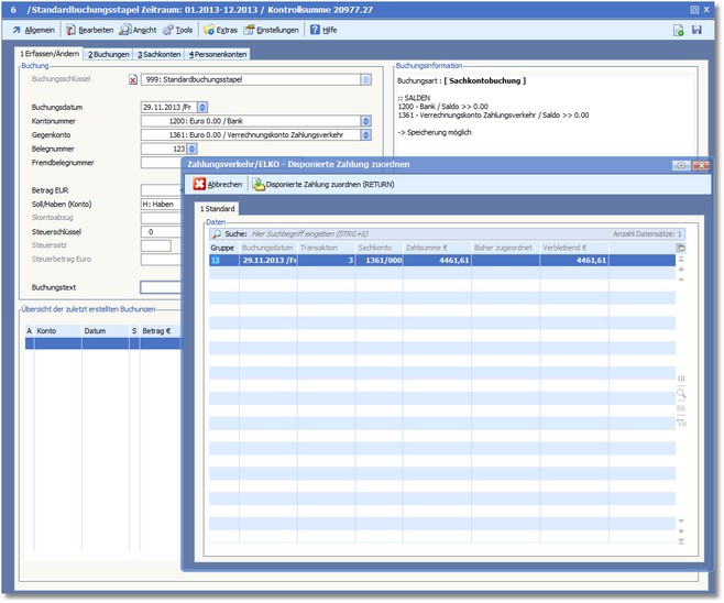 Die Zuordnung von disponierten Zahlungen erfolgt bei der Erfassung der Bankauszüge: