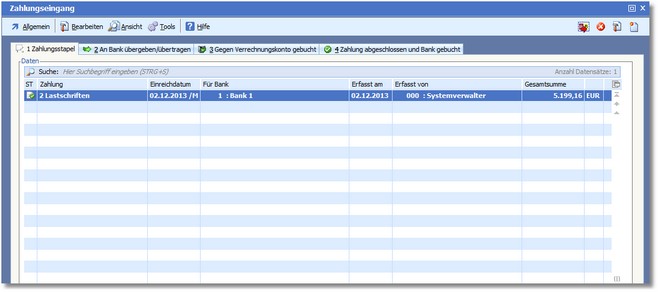 _ Die Karteikarte "1 Zahlungsstapel"