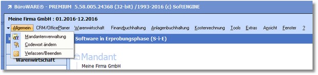In diesem Teil des Handbuchs wird der Hauptmenüpunkt "Allgemein" beschrieben. Dieser Menüpunkt steht in allen Modulen der BüroWARE in der Menüleiste zur Verfügung.