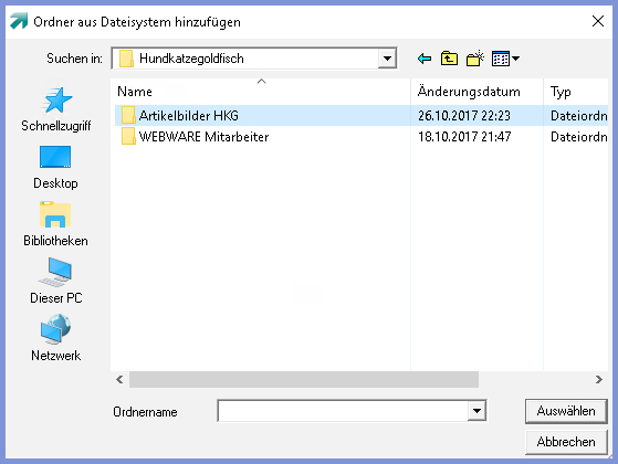 Wählen Sie den Ordner aus, in den Sie die Bilddaten einfügen wollen.
