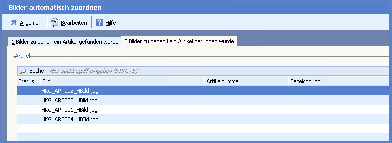 In der Vorschau sehen Sie auf der Karteikarte 2 die „Bilder zu denen kein Artikel gefunden wurde“.