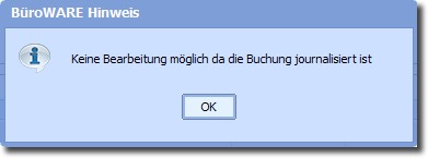 Ist die Buchung journalisiert, erhalten Sie eine entsprechende Meldung.
